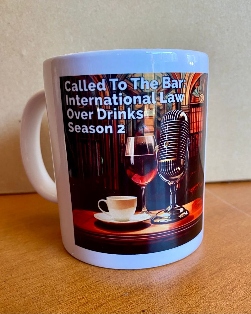 I'd toyed with the idea of doing an occasional podcast on international law for some years, and was delighted when colleagues Juliette McIntyre, Ntina Tzouvala, Imogen Saunders and Tamsin Philippa Paige signed on as co-hosts. I anticipated we might sustain enthusiasm for a year, produced a limited run of episodes and attract an audience of 30-60. Two years on we have 1,500 subscribers and episodes which have been listened to thousands of times. As a thank you to co-hosts I made a mug featuring our season 2 cover and our catchphrase.