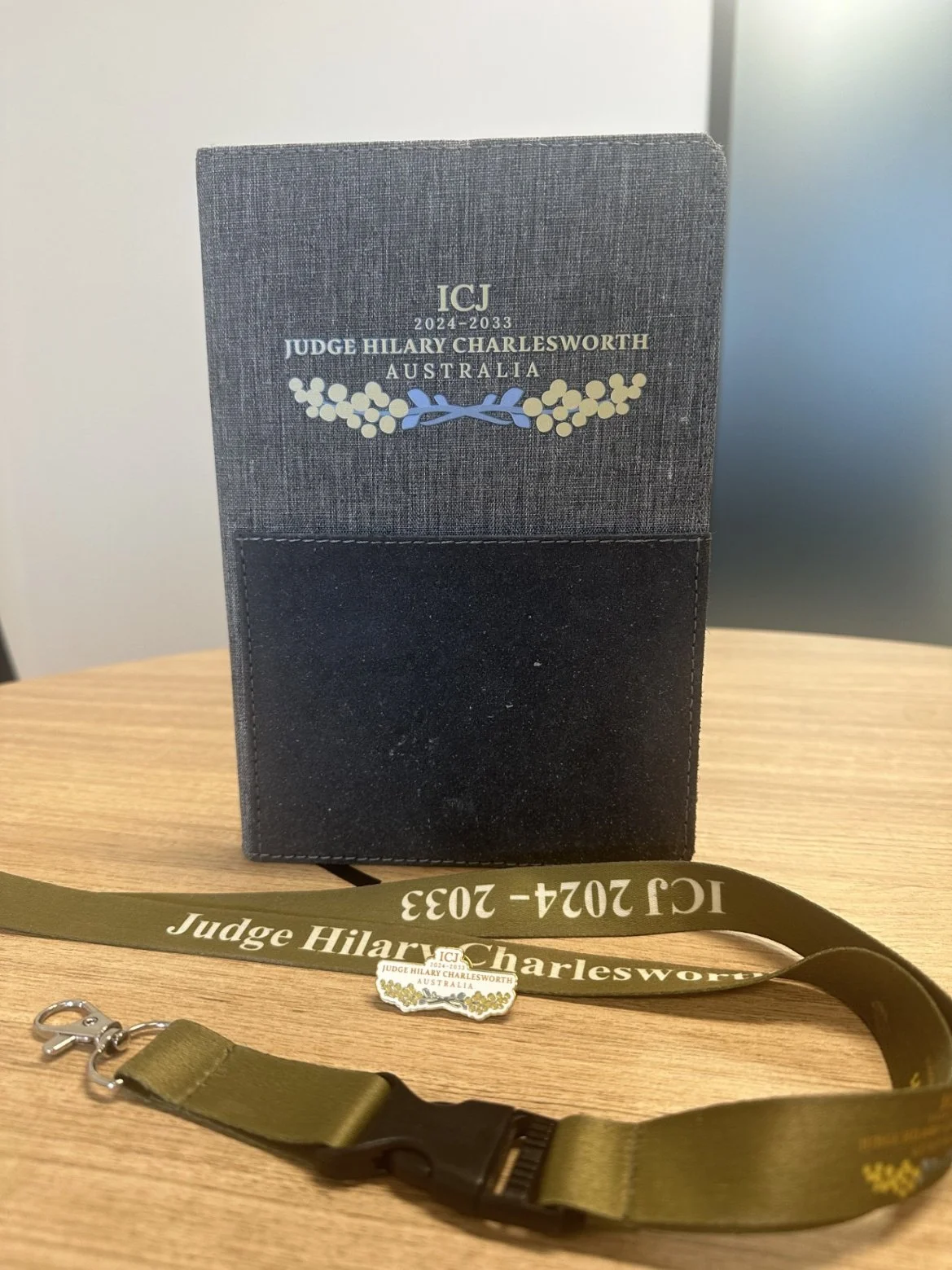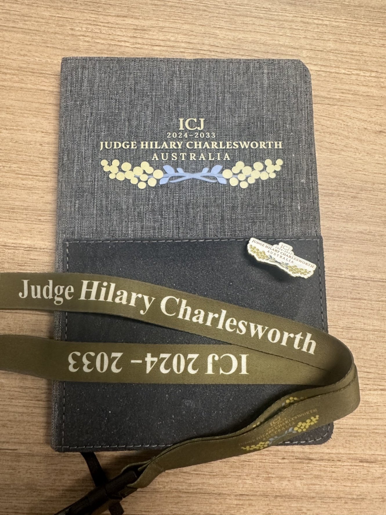 These are photos of my memorabilia of the 2023 campaign for Hilary's re-election to the ICJ. These were collected from friends/contacts at the Australian Mission to the UN in New York and from DFAT in Canberra, with much begging on my part.